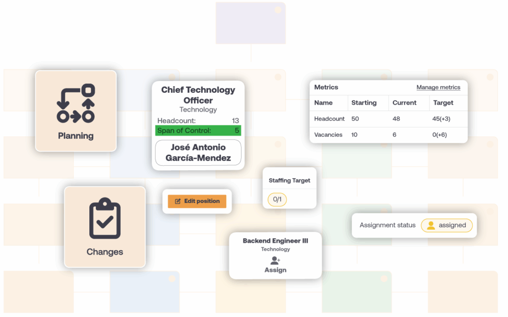 OrgChart seamlessly integrates with more than 50 HR systems, making it easy to connect to the tools you already use, from HRIS to ATS platforms. Combine data from multiple sources into a single, always up-to-date org chart to get a complete and accurate view of your workforce.