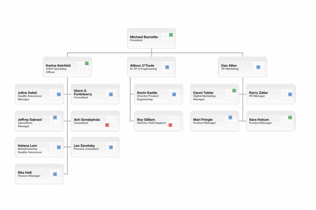 With standard formats, the org chart will match the brand and style guides you want in minutes, allowing you to make real-time decisions.