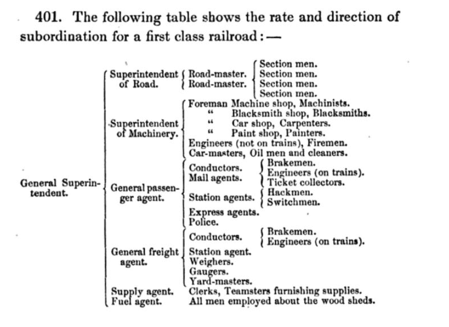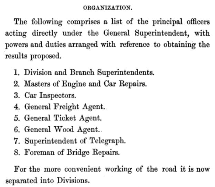“All that is required to render the efforts of railroad companies in every respect equal to that of individuals, is a rigid system of personal accountability through every grade of service. That, my friends, is the impetus behind the org chart: a rigid system of personal accountability throughout every grade of the organization.”