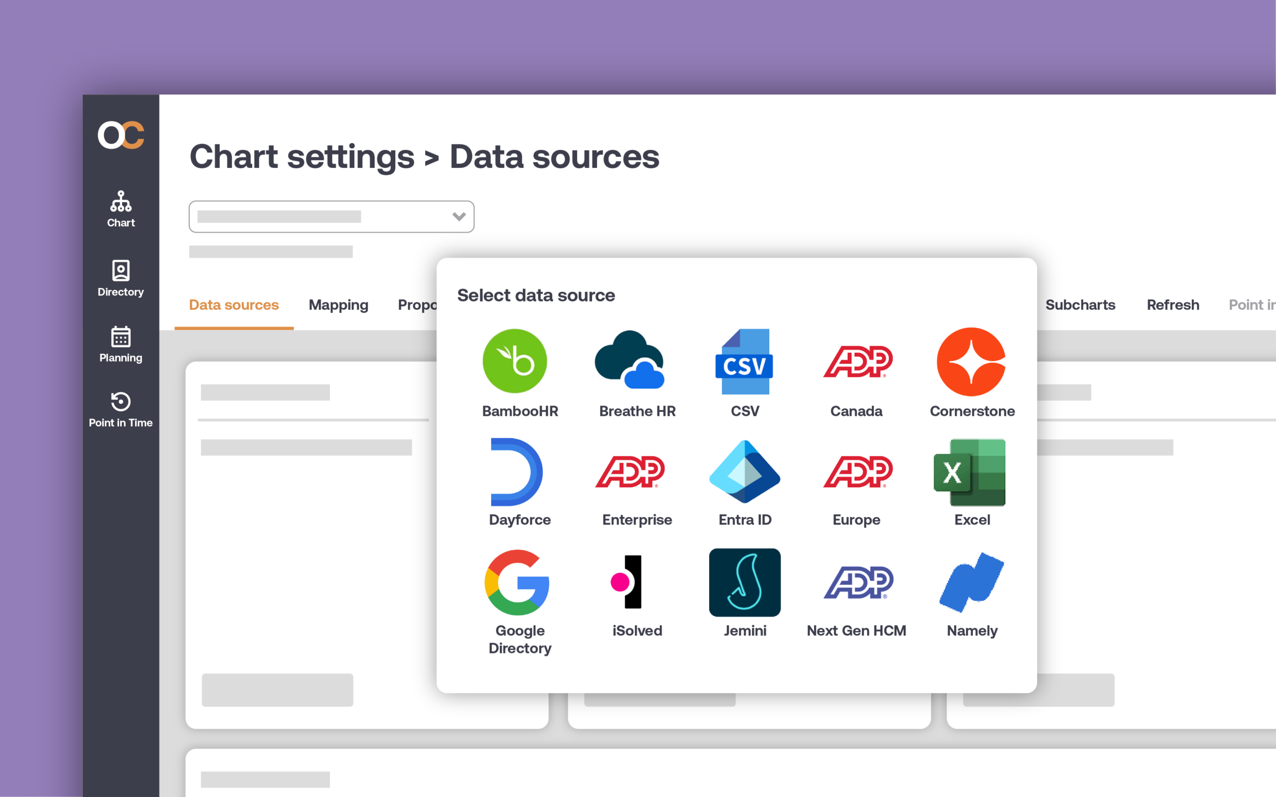 OrgChart integrates with 50+ HRIS platforms, including Workday, ADP, and UKG
